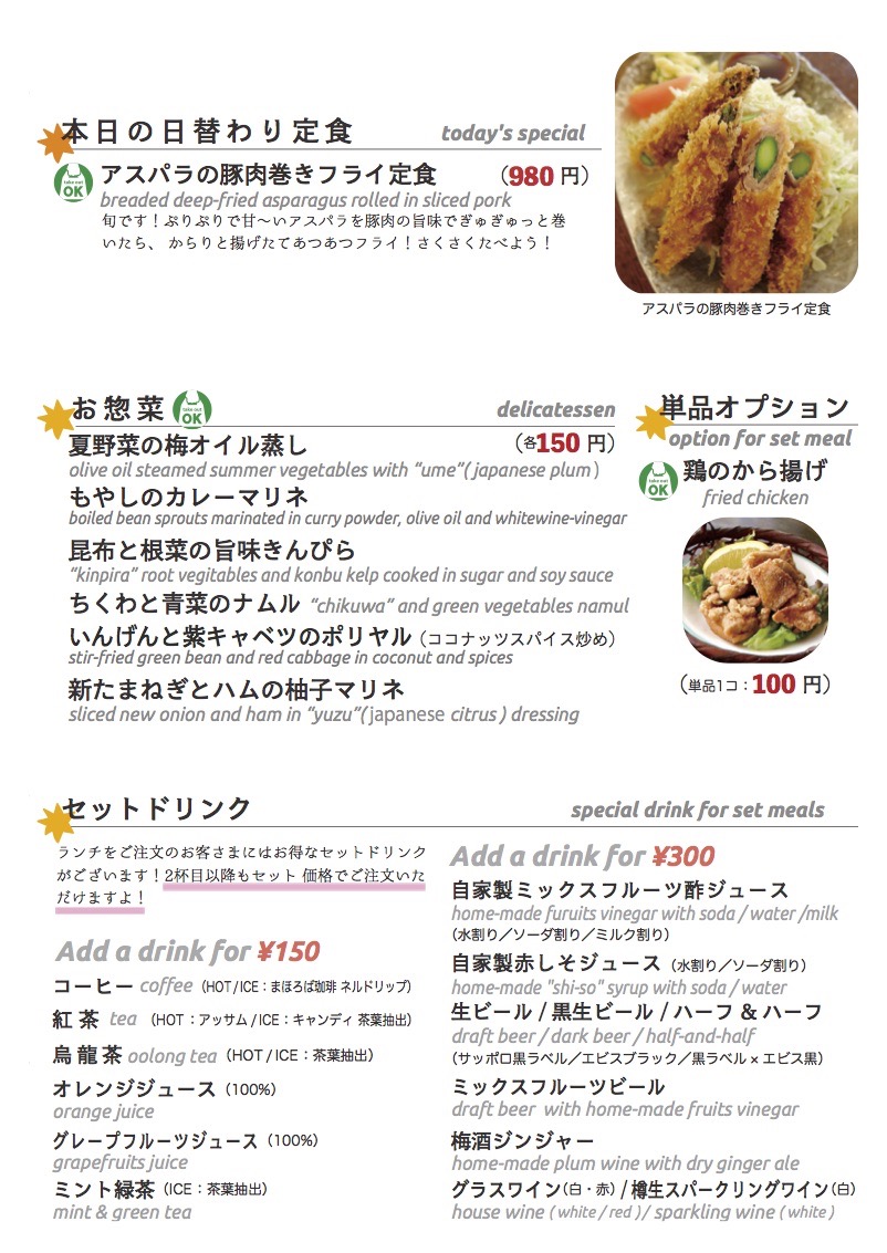 (お持ち帰り定番メニューやご利用方法などはこちらをどうぞ)