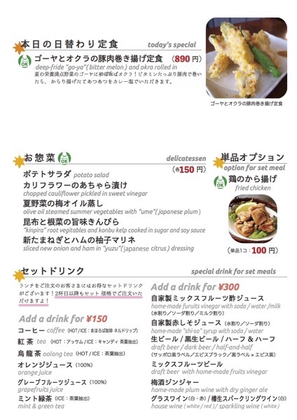 (お持ち帰り定番メニューやご利用方法などはこちらをどうぞ)