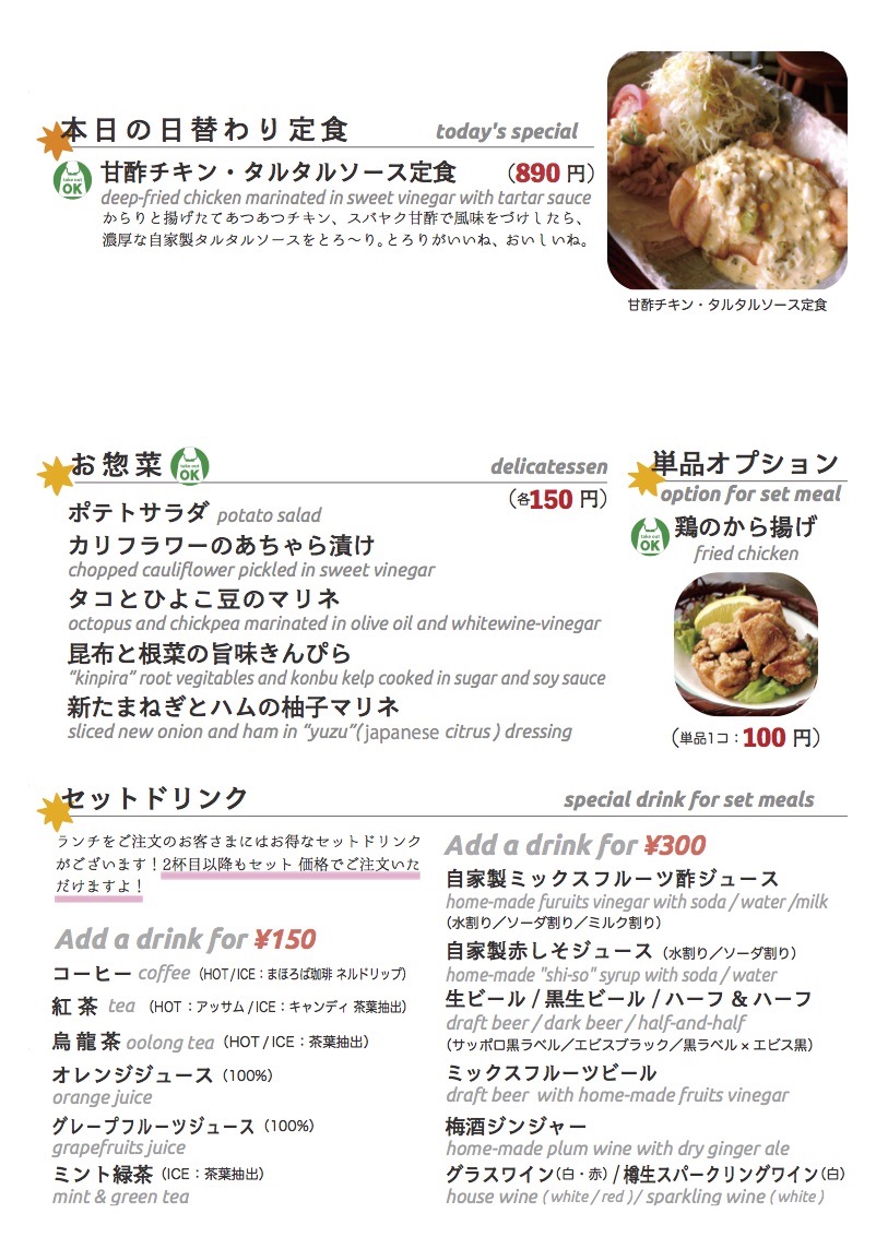 (お持ち帰り定番メニューやご利用方法などはこちらをどうぞ)