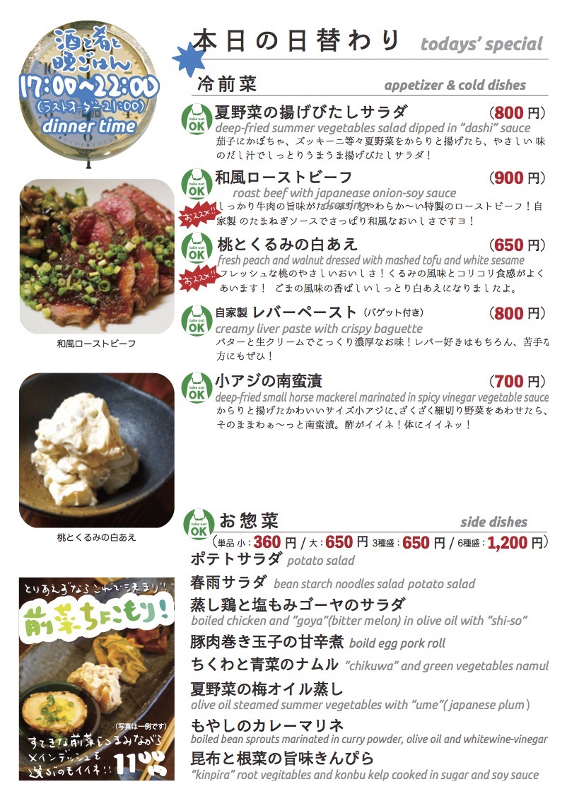 今夜もおいしいごはんは日替わりに、もちろんお持ち帰りも!