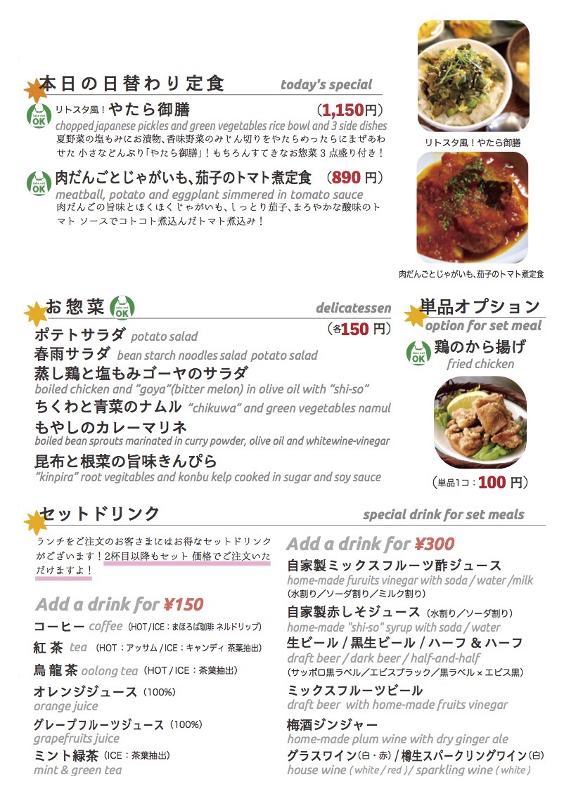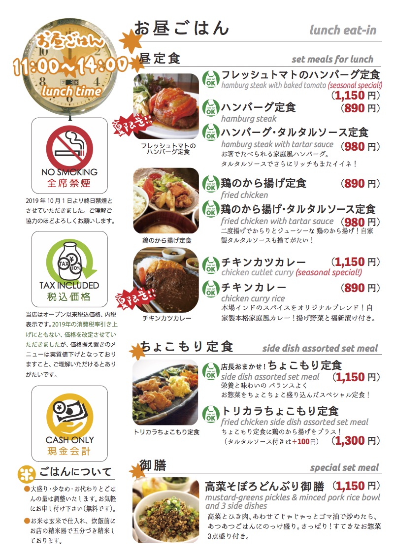 (お持ち帰り定番メニューやご利用方法などはこちらをどうぞ)