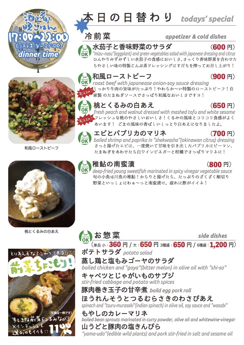 今夜もおいしいごはんは日替わりに、もちろんお持ち帰りも!