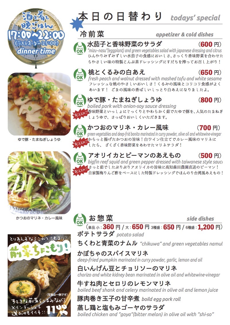 今夜もおいしいごはんは日替わりに、もちろんお持ち帰りも!