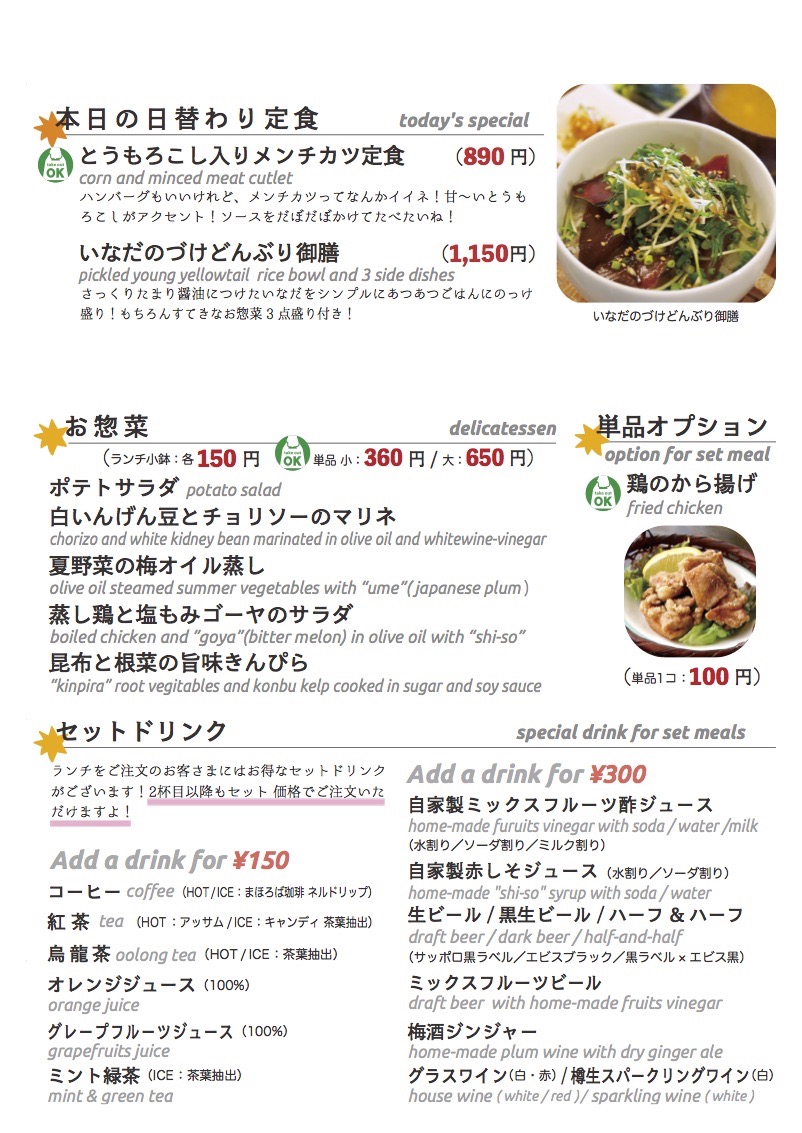 (お持ち帰り定番メニューやご利用方法などはこちらをどうぞ)