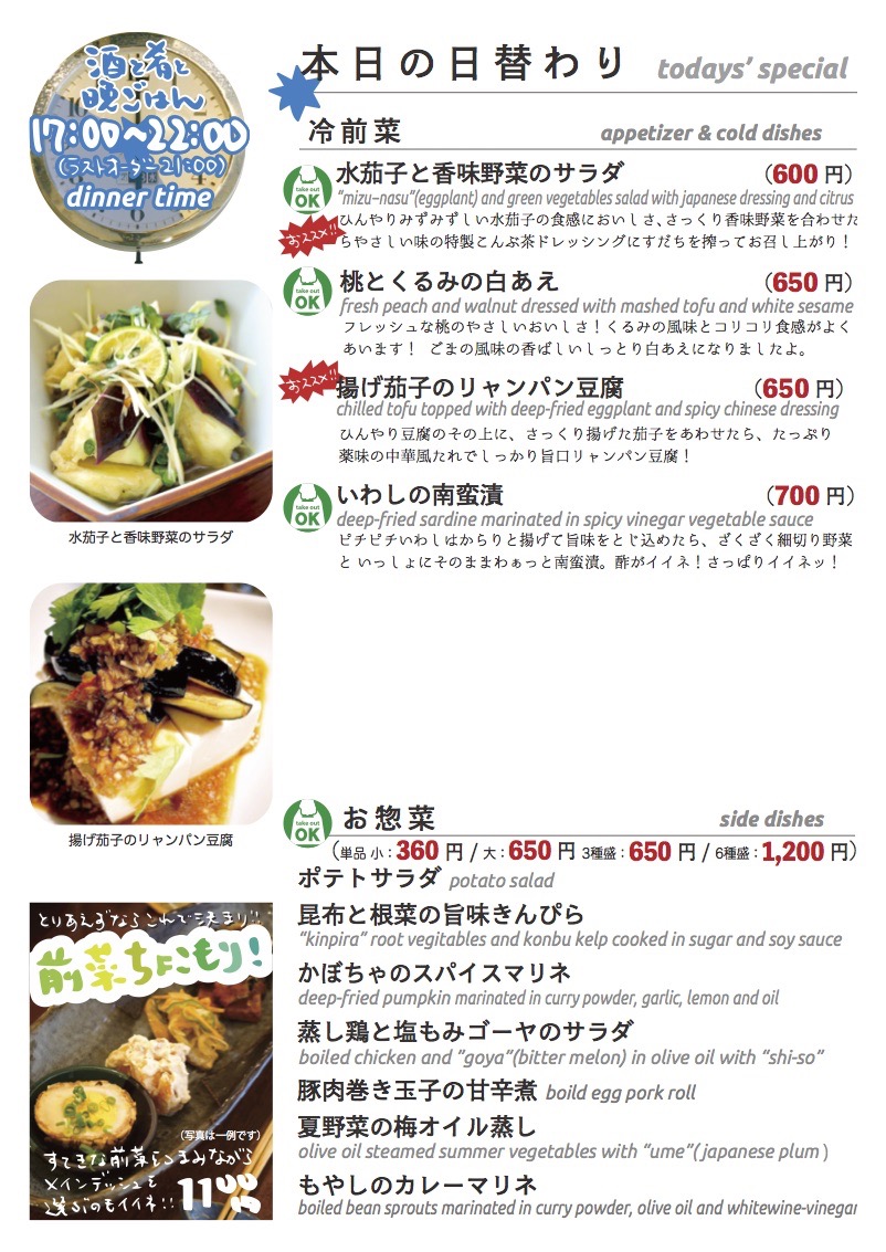 今夜もおいしいごはんは日替わりに、お持ち帰りも!