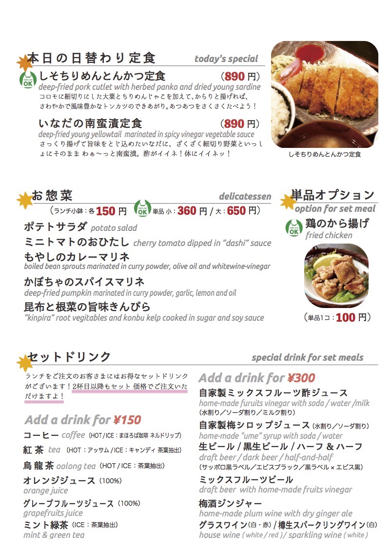 (お持ち帰り定番メニューやご利用方法などはこちらをどうぞ)