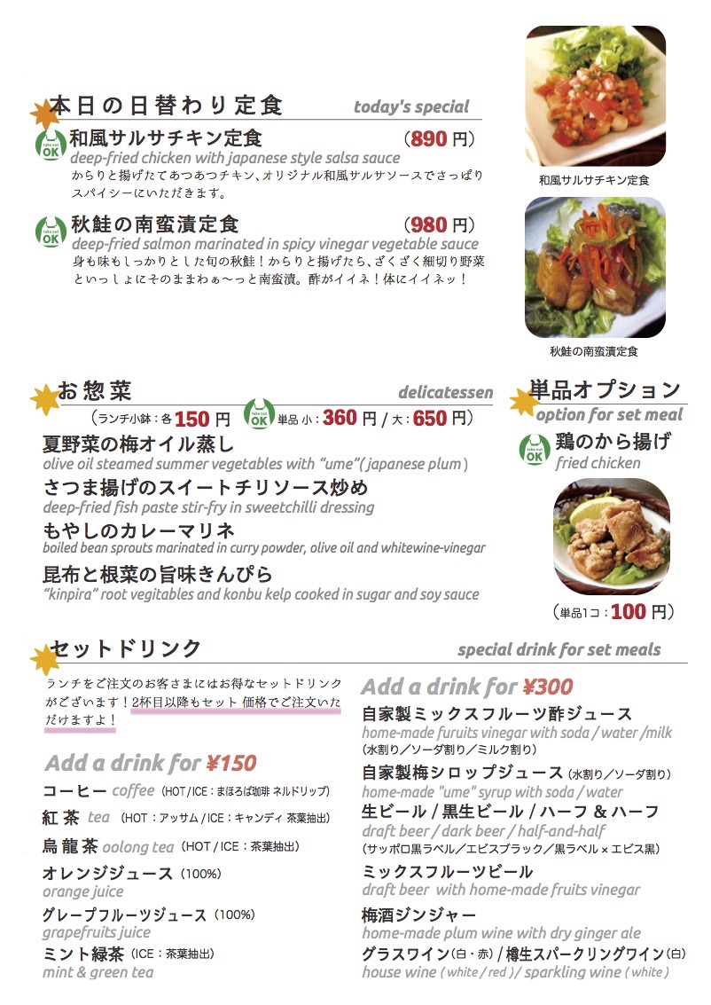 (お持ち帰り定番メニューやご利用方法などはこちらをどうぞ)