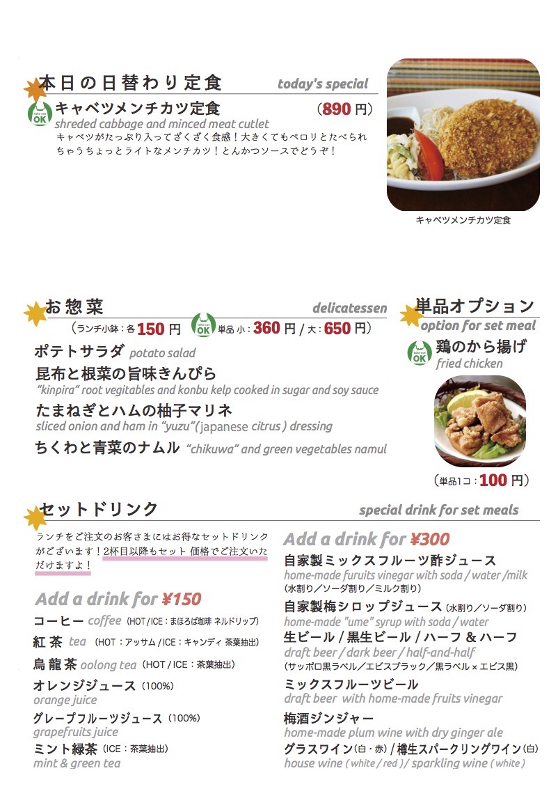 (お持ち帰り定番メニューやご利用方法などはこちらをどうぞ)