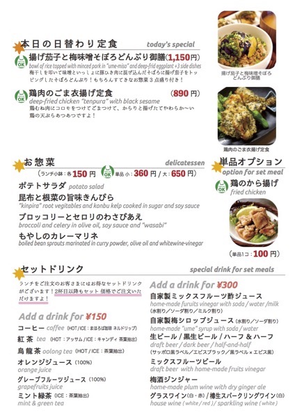 (お持ち帰り定番メニューやご利用方法などはこちらをどうぞ)