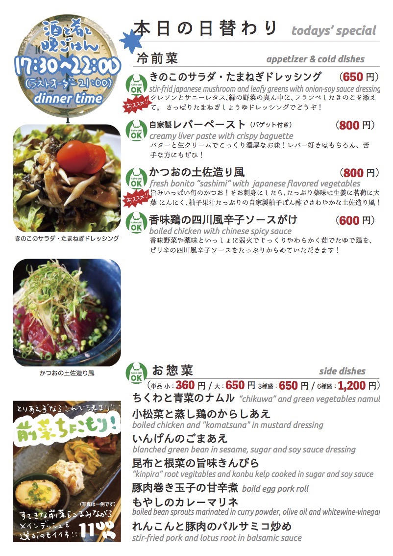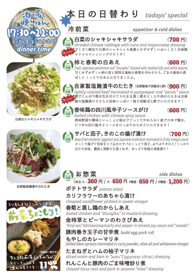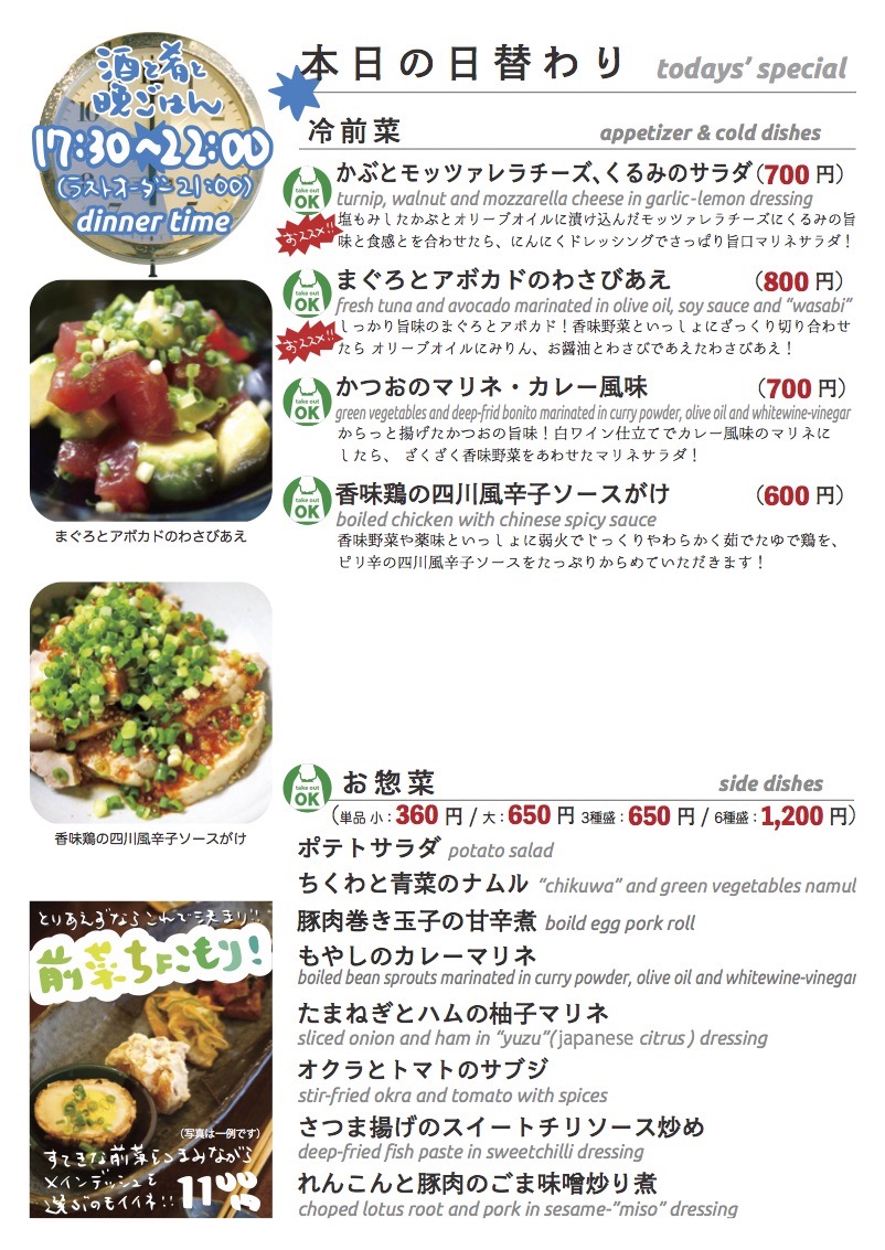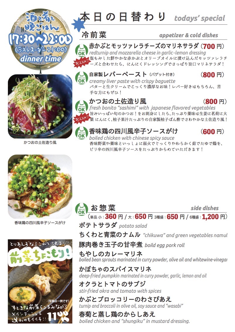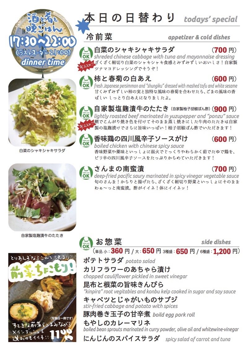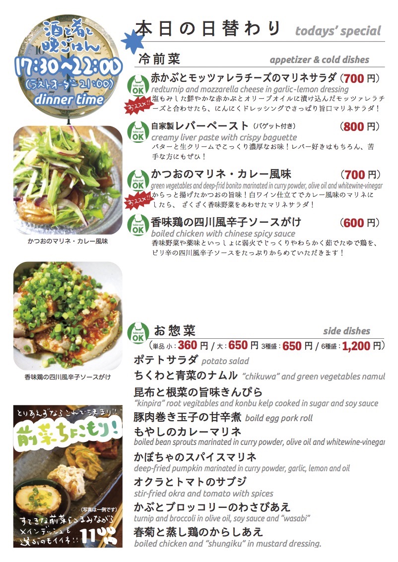 今夜もおいしいごはんは日替わりに、もちろんお持ち帰りも!