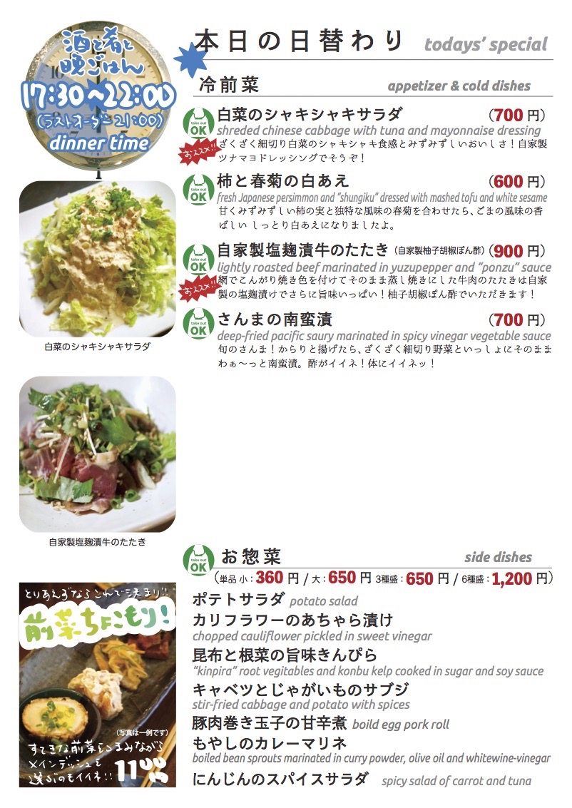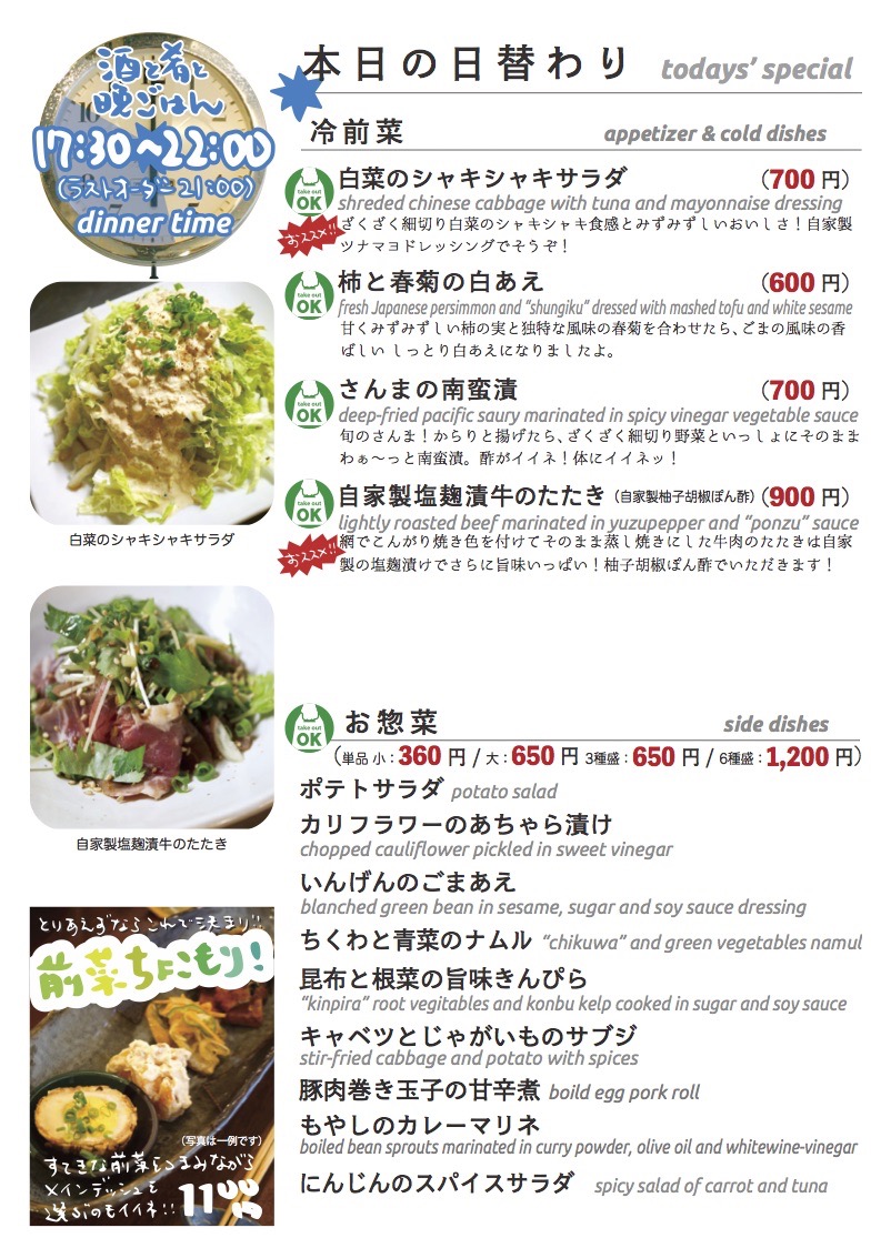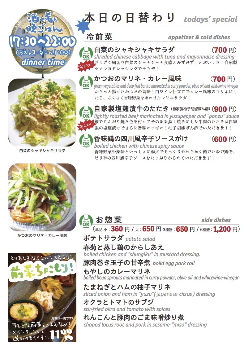 そんなかんじで土曜日の夜もはじまっておりますよと、今夜もおいしいごはんは日替わりに、もちろんお持ち帰りも!