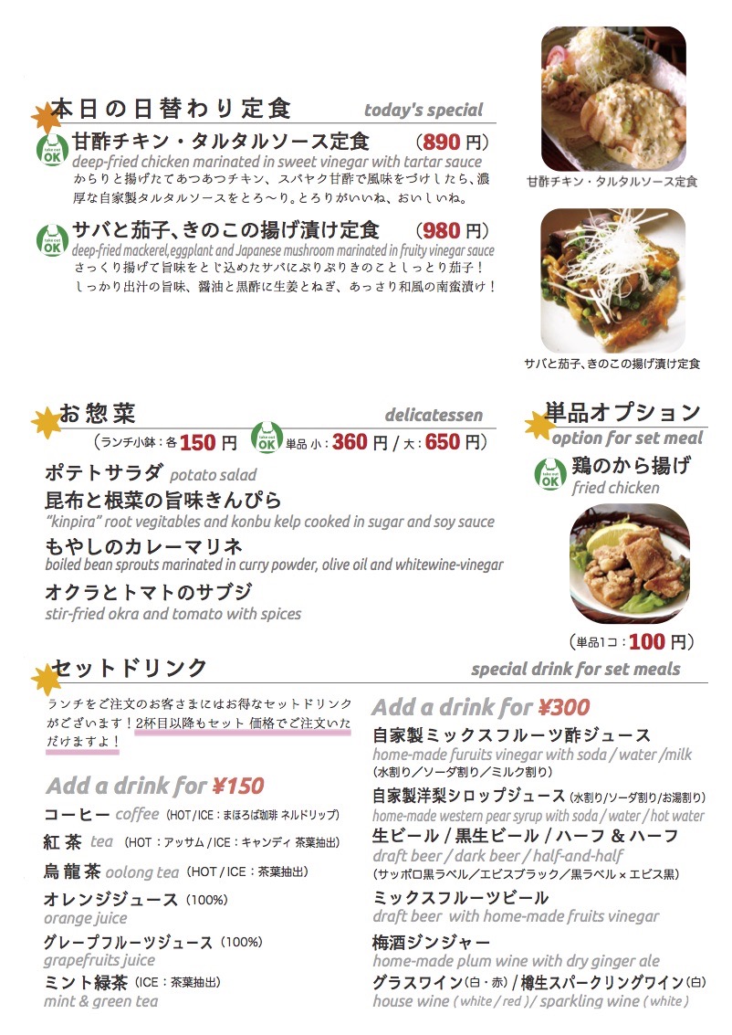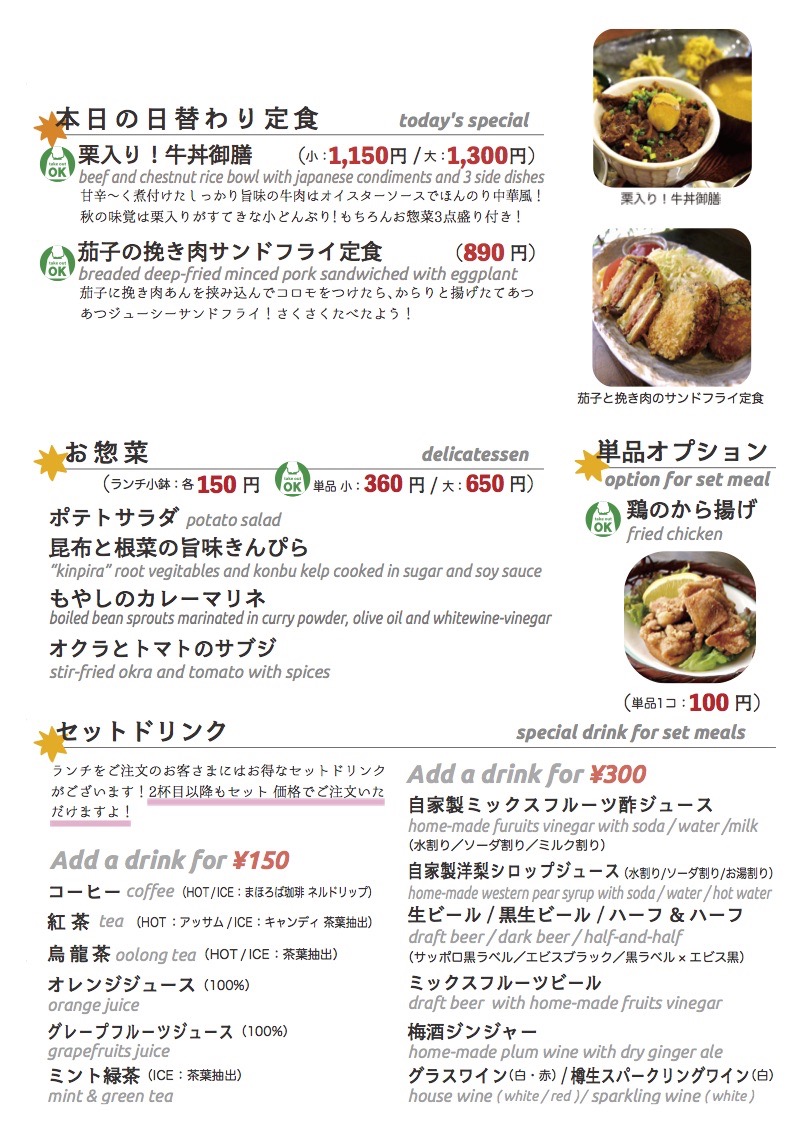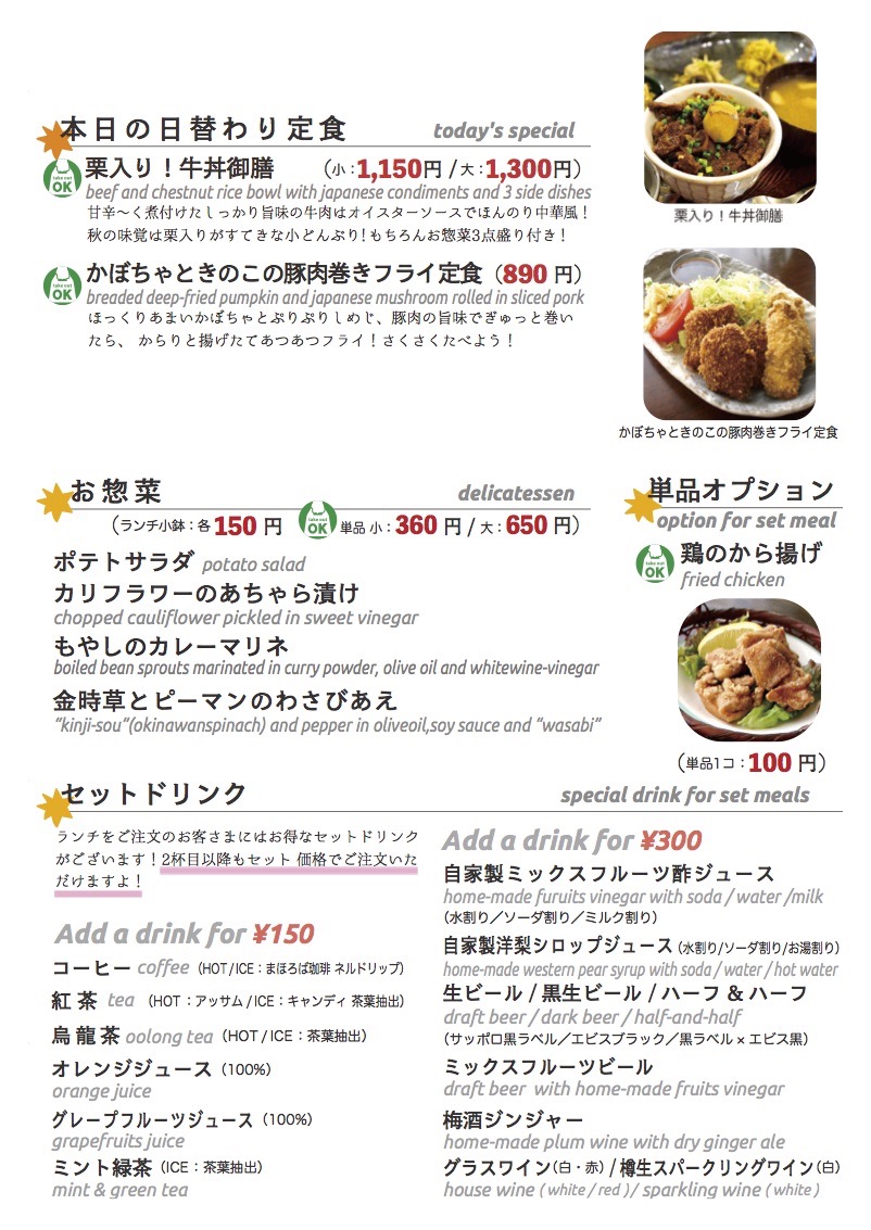(お持ち帰り定番メニューやご利用方法などはこちらをどうぞ)