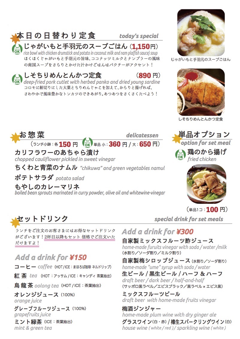 (お持ち帰り定番メニューやご利用方法などはこちらをどうぞ)