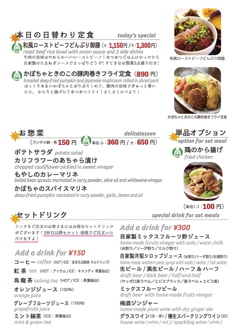 (お持ち帰り定番メニューやご利用方法などはこちらをどうぞ)