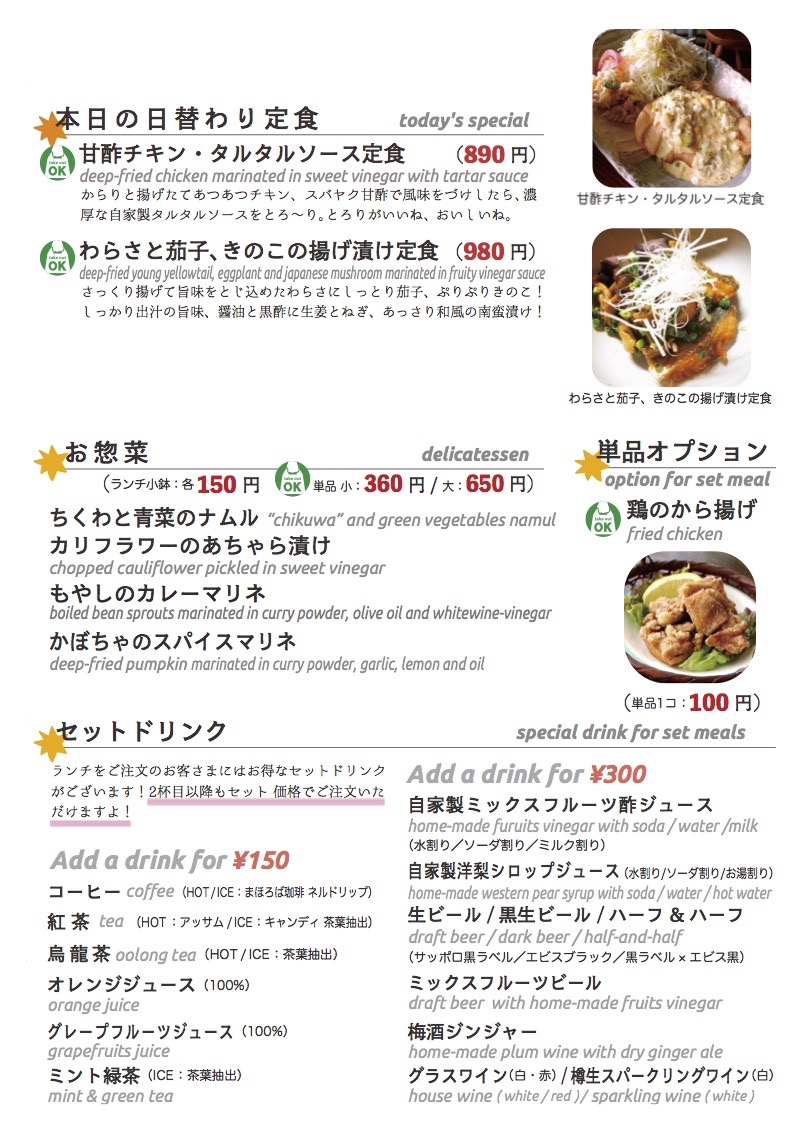 (お持ち帰り定番メニューやご利用方法などはこちらをどうぞ)