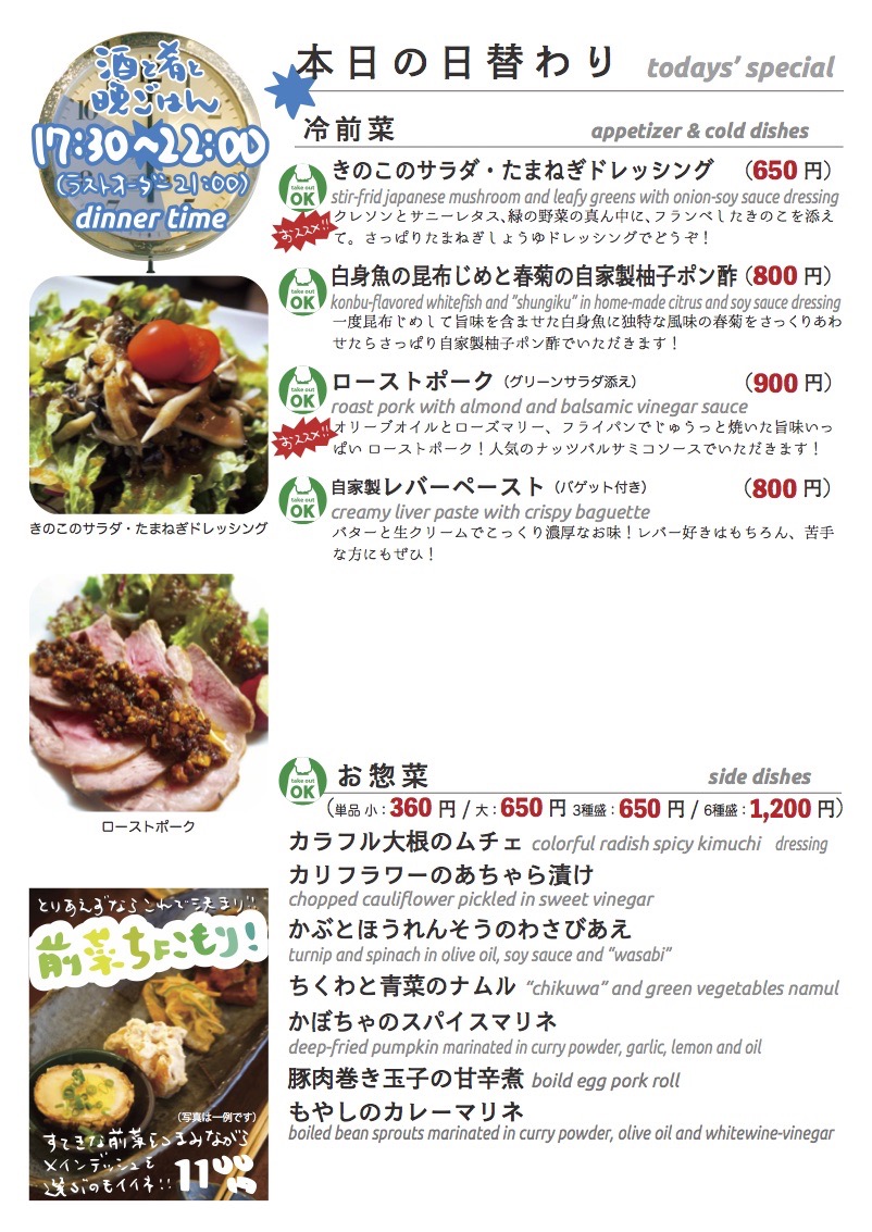 今夜もおいしいごはんは日替わりに、もちろんお持ち帰りも!
