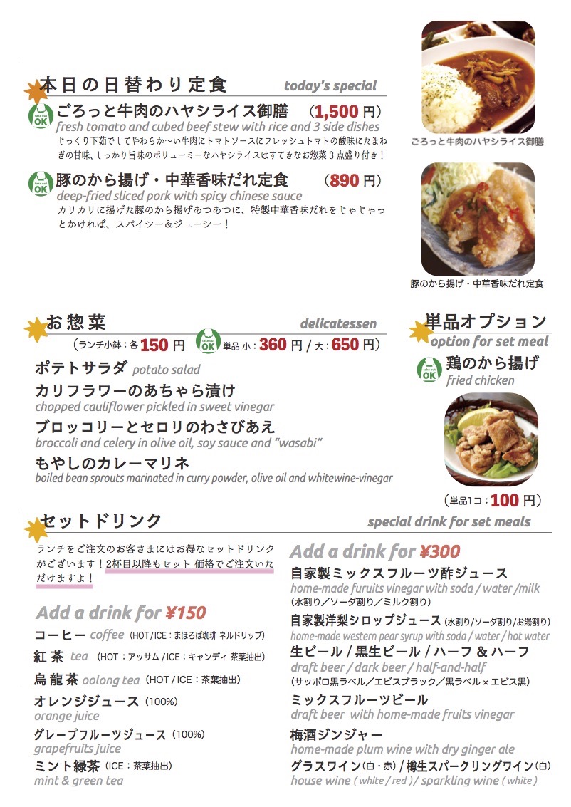 (お持ち帰り定番メニューやご利用方法などはこちらをどうぞ)