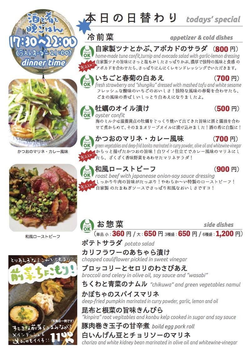 今夜もおいしいごはんは日替わりに、もちろんお持ち帰りも!