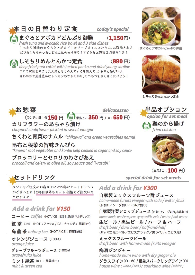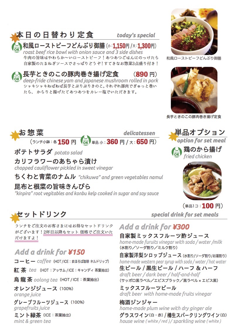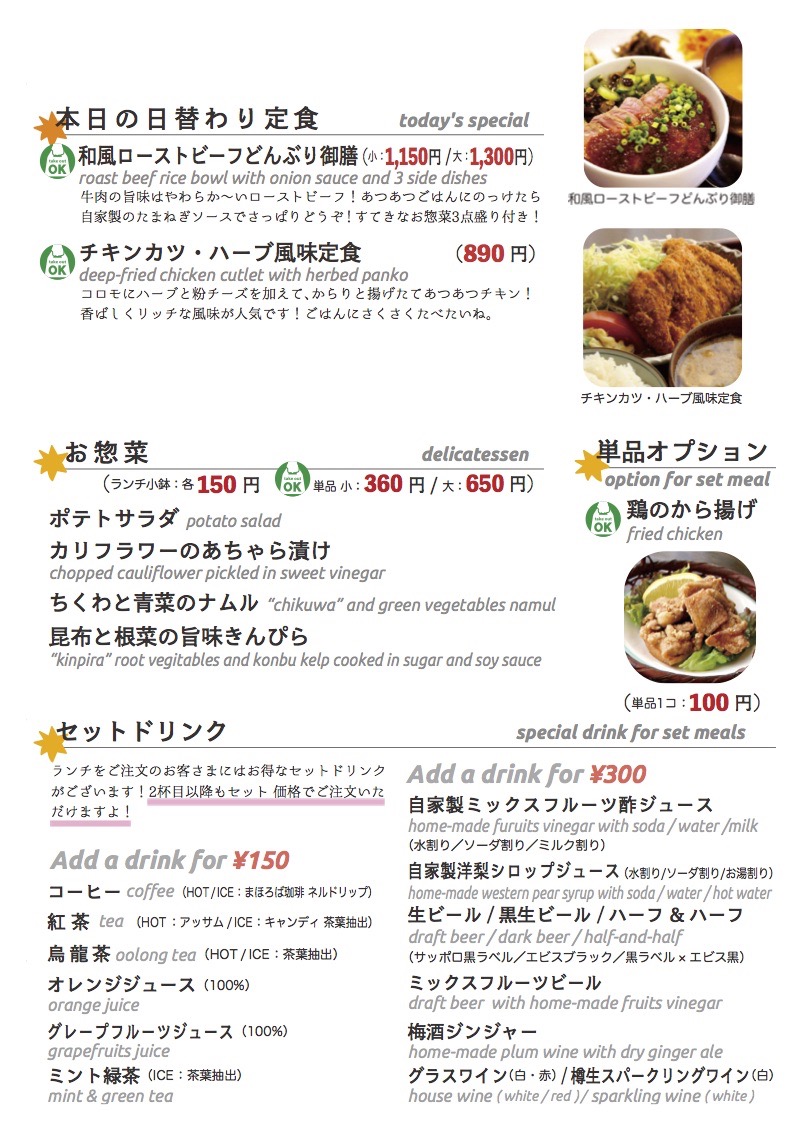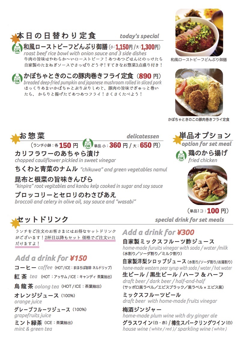 (お持ち帰り定番メニューやご利用方法などはこちらをどうぞ)