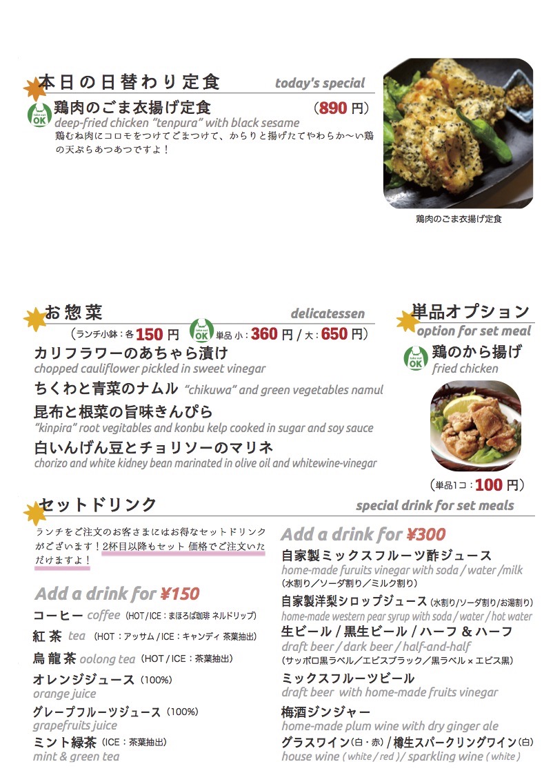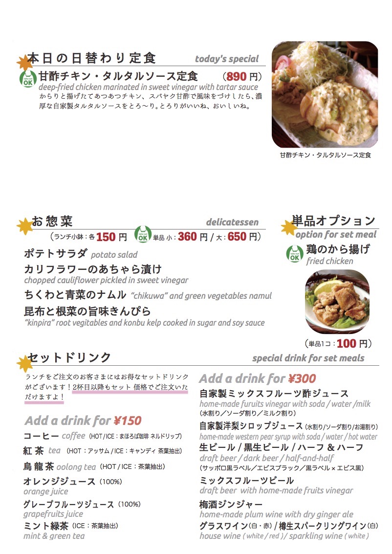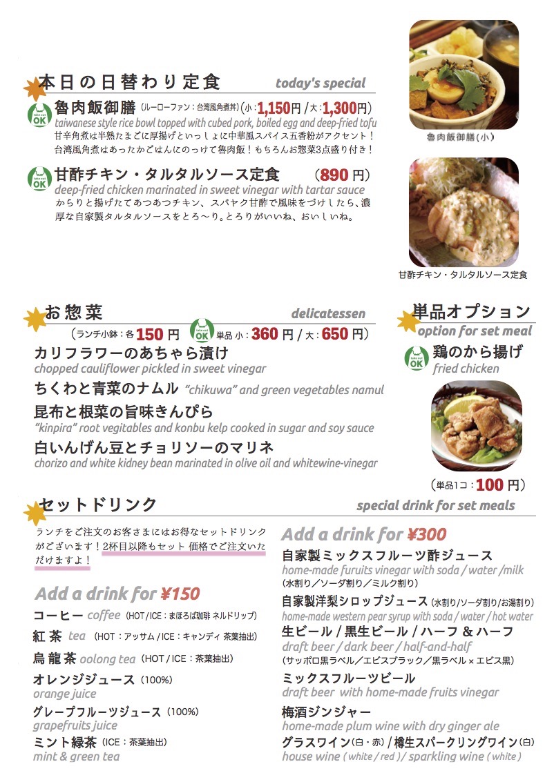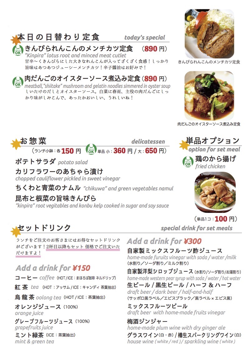 (お持ち帰り定番メニューやご利用方法などはこちらをどうぞ)