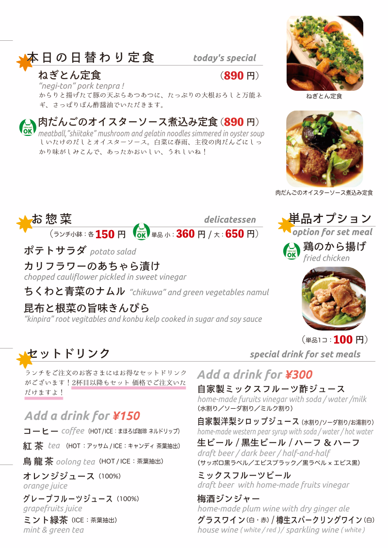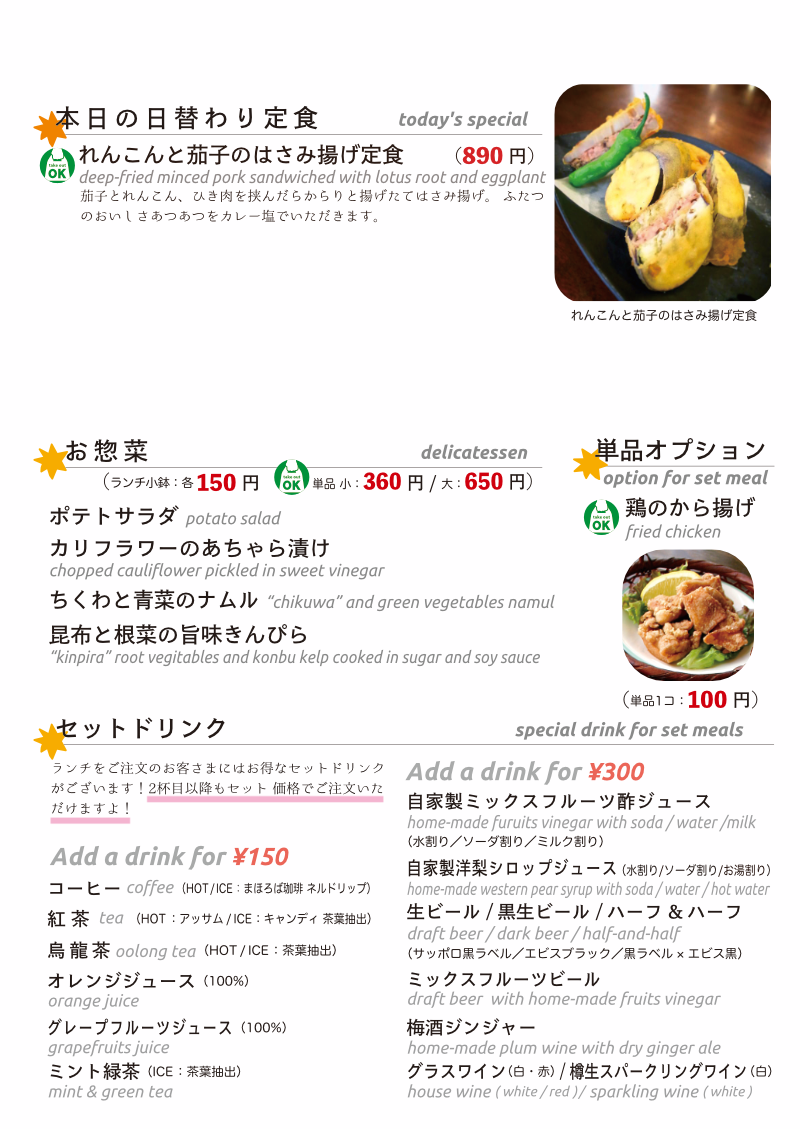 と、その分ちょっとその他いつも通りとはいきませんで、今日のお昼時も日替わりメニューはお休みとなっております...定番からまた新しいおいしさを見つけ出すチャンスかもよ!とか思いつつ(スミマセン)。