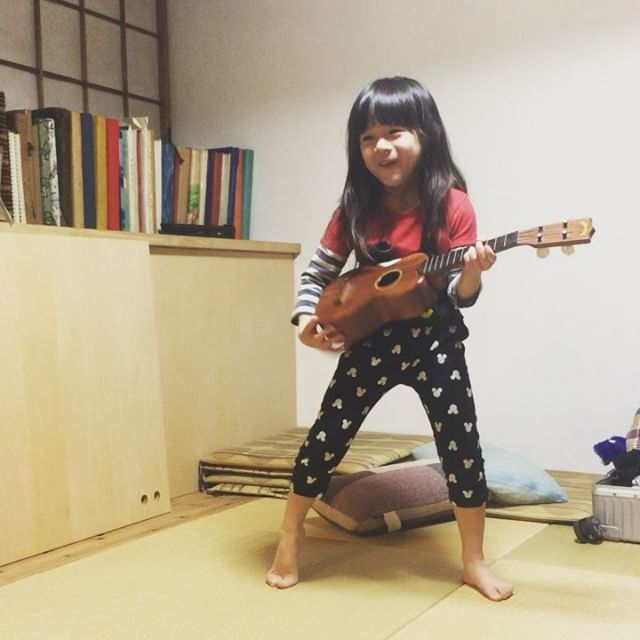 かっこいいギターの弾き方をokayanに習う甥っ子小鉄。