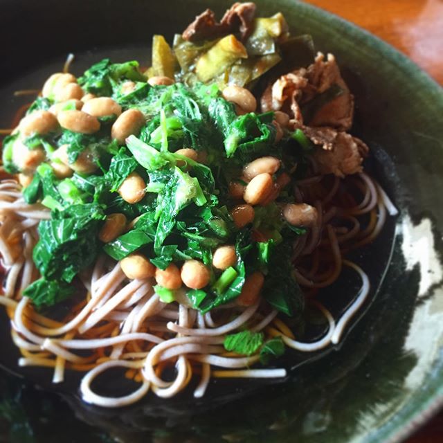 2019年7月29日2019年7月29日 なっとーー!!いただきものの納豆に、三鷹産のモロヘイヤを茹でて刻んで混ぜ混ぜ、納豆とモロヘイヤのぶっかけ蕎麦。ニラ豚しゃぶも添えて。納豆は最近近所にオープンした天草納豆さんのもの。今回は店主と知り合いというウチのお店のお客様にいただきましたが、美味しいです!ありがとう、カナタニさん。天草納豆さんが月曜日定休日というのが残念、いつ行けるかなー(麻)