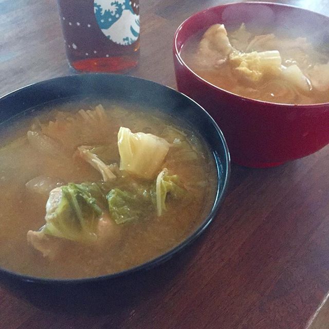 2017年12月15日2017年12月15日 具だくさん味噌汁で冬を乗り切る!というわけで、白菜とえのき、玉ねぎと豚肉。黒七味とゴマをかけていただくと、ちょっと料理の格が上がる気がする。おニューの器、二つ揃うとまた可愛い。 permalink