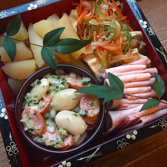 2017年12月31日2018年1月14日 リトスタっぽい二の重。ブリの南蛮漬け、豆とチョリソーのマリネ、マイスタームラカミのハム、かおちゃん作ってくれた数の子、市販の数の子も半々で。 permalink