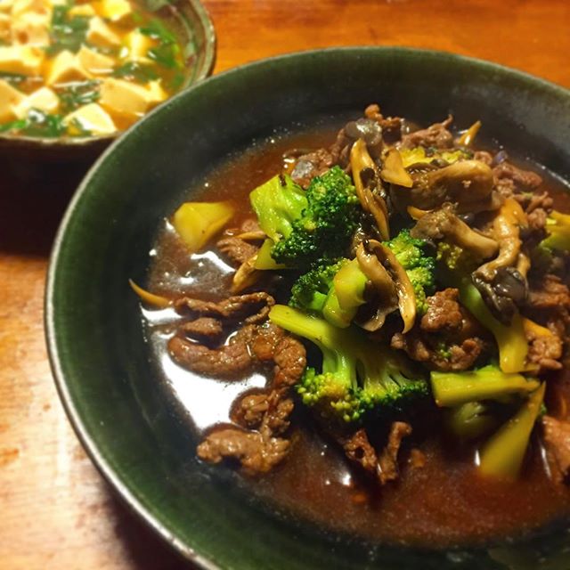 2017年12月18日2018年1月14日 部屋の片付けに夢中になり、まさかの今からごはん。夜中っすよ。牛肉ときのことブロッコリのオイスターソース炒め。麻婆豆腐。さらにもう一つある…写真に撮ってない、キノコとソーセージのスパゲティグラタン。カロリー高めだけど、痩せる気あるわけ?わたし。 permalink