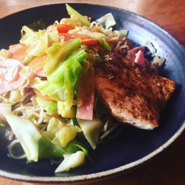 2017年3月27日2017年9月5日 焼きそばが食べたくて、麺だけかってあって、お店用に買ったけど使わなかったメカジキがあって、夜は鍋が食べたいと言うツレアイの意見を聞いた結果、メカジキのっけあんかけ焼きそばができあがりました。具もありあわせで、人参とセロリとキャベツにハム。あんかけにすれば大抵美味しい。 permalink