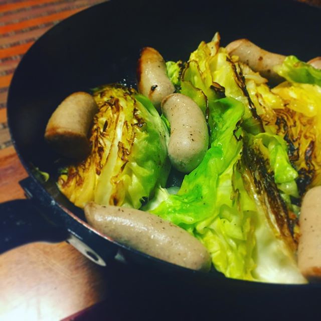 2017年3月27日2017年9月5日 困った時の、焼きキャベツ。美味しいウインナーをマイスタームラカミで買って、キャベツと一緒に焼くだけ。今日はガラムマサラも振って、バターとオリーブオイル、塩コショウ。 permalink