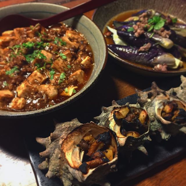 2017年4月10日2017年4月10日 今日はツレアイの弟あっちゃんが差し入れてくれたサザエを、ちゃんと捌いてつぼ焼きにしてみました!捌き方はググって初めての作業。何事も勉強じゃな。ちょっと焼きすぎちゃった。麻婆の素じゃない麻婆豆腐、茄子のベトナム風蒸し物。休みの日にしては頑張ったわ〜。 permalink