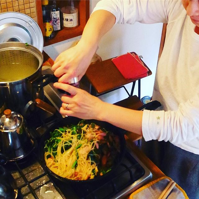 2017年4月17日2017年9月5日 先週友人にもらった群馬方面の青菜(あぶら菜?)を半分残していたら冷蔵庫でワサッとしていたので、茎と葉っぱに分ける。この面倒な一手間で料理の完成度が変わる。山ほど入れたパスタにしよう。 permalink