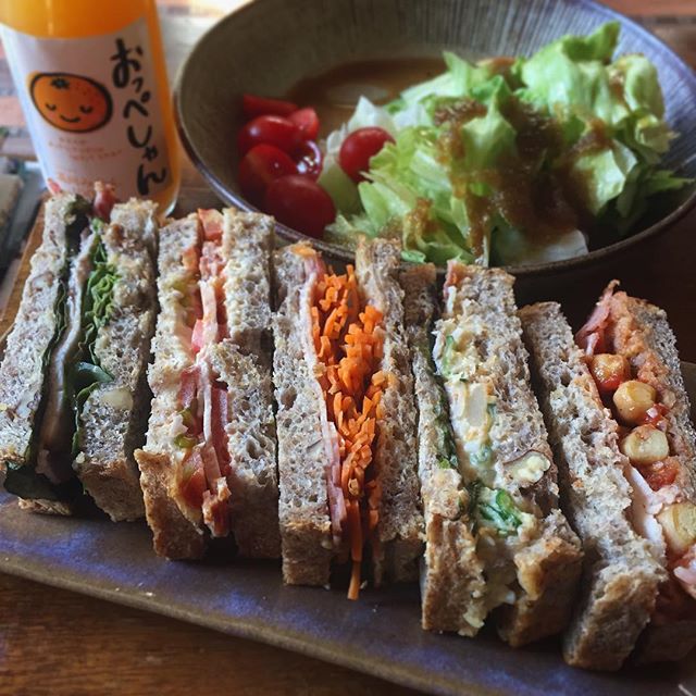 2017年6月19日2017年9月5日 旬の青梅を使用した、チカぱん初の自家製自然酵母によるプルマンで、サンドイッチ祭り!ひよこ豆と鶏肉のトマト煮、ポテトサラダ、人参のシークワーサーマリネ、トマトハム、ハムレタスなどのサンドイッチ。楽しく作られたパンを、楽しくサンドイッチにして、楽しく食べる喜び。 permalink