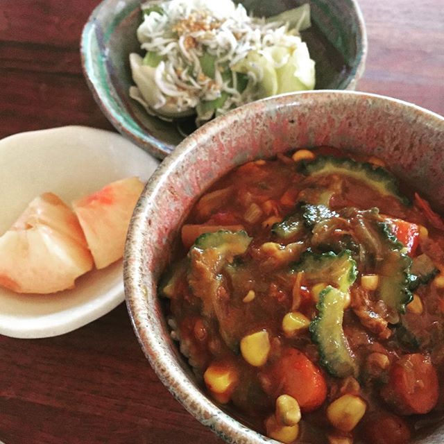 2017年6月26日2017年9月5日 たまにはグリーンカレーを食べたいのです。スタッフ・ニッシーのお父さんが作ったズッキーニ入り。サラダにはシークワーサーとオリーブオイルのドレッシングを。辛い、美味しい。 permalink