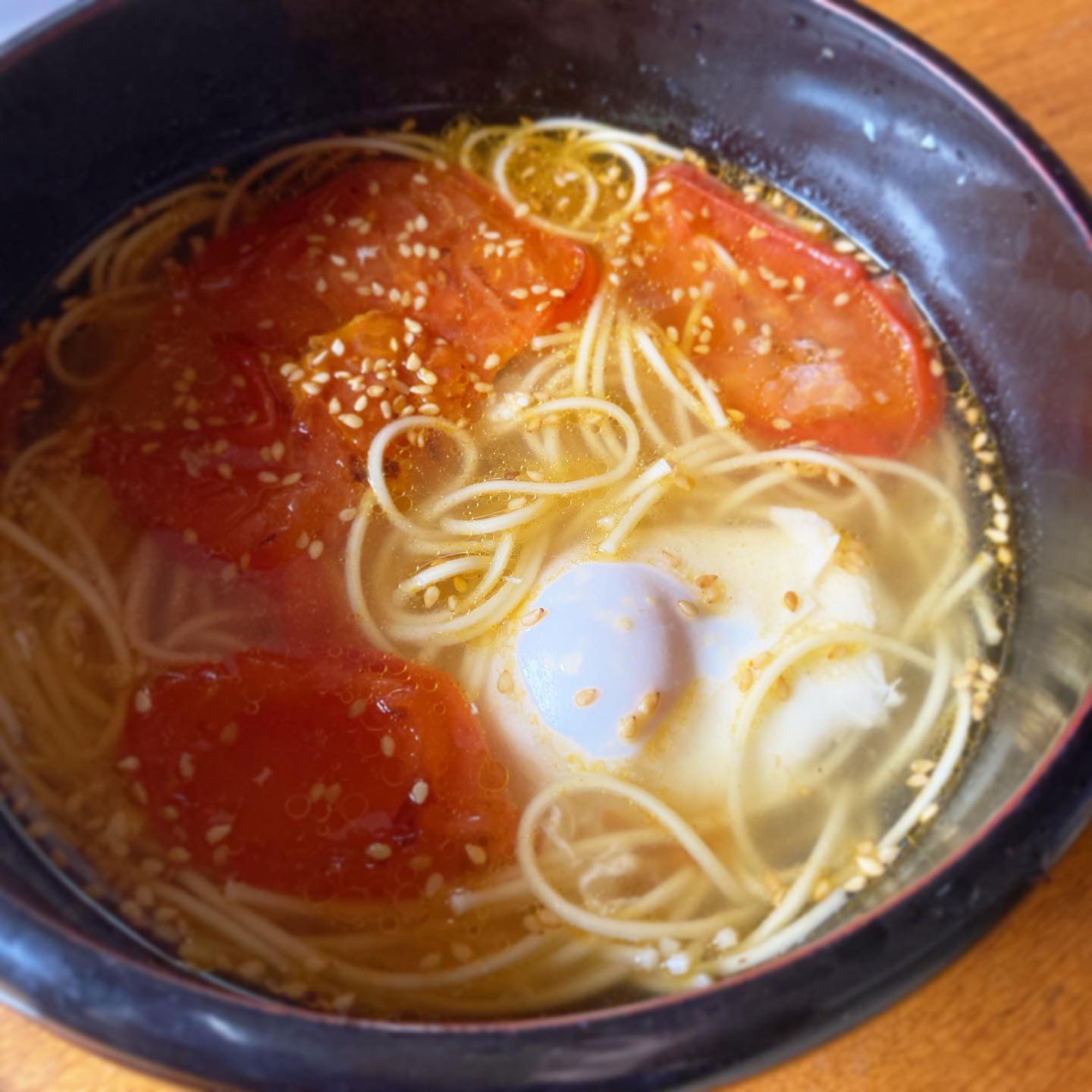 連休初日は、ツレアイokayanによるトマトラーメンではじまった。見ようによっては高級中華に見える