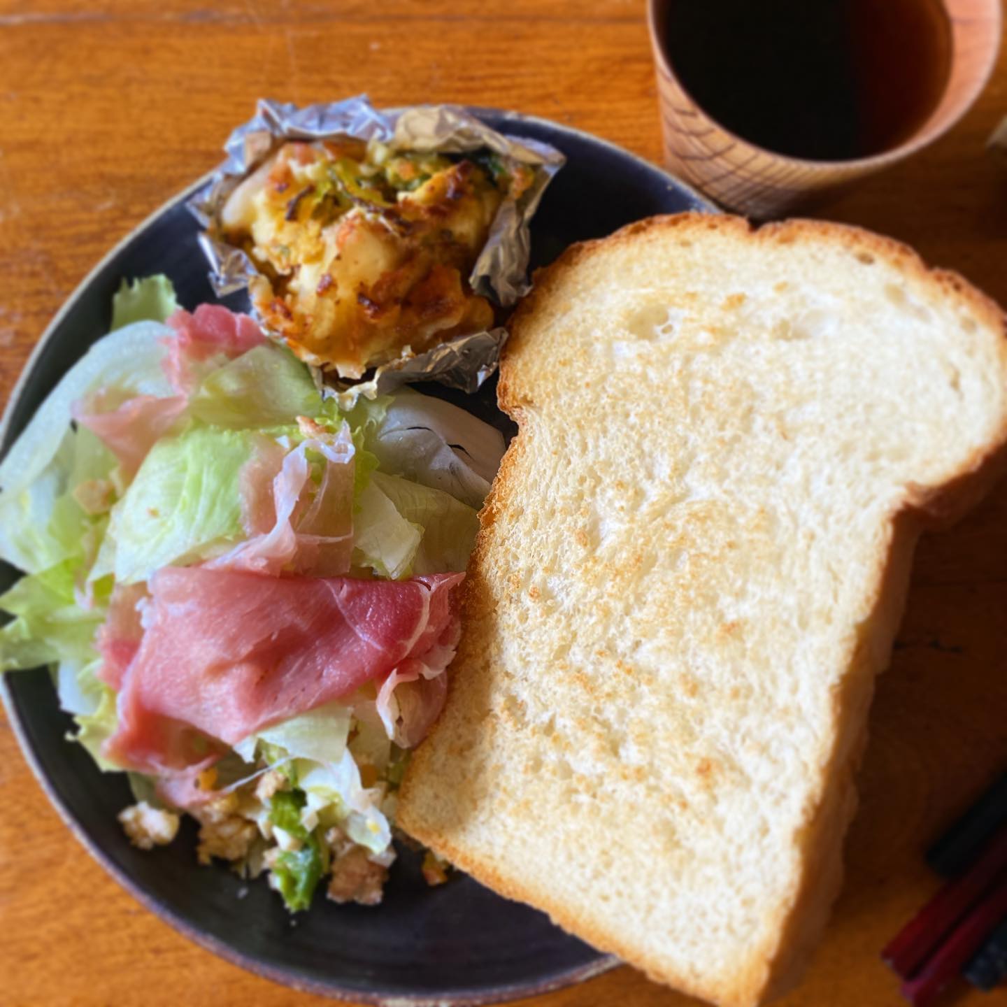 チカぱんランチプレート!今回は大量購入して妹にも送ることにした。このご時世美味しいものくらいしかストレス発散できなかろう。生ハムの切り落としを添えただけで、レタスサラダが豪華だなー。吉野夫妻にお土産にいただいた柑橘オリーブオイルをかけて幸せ〜。