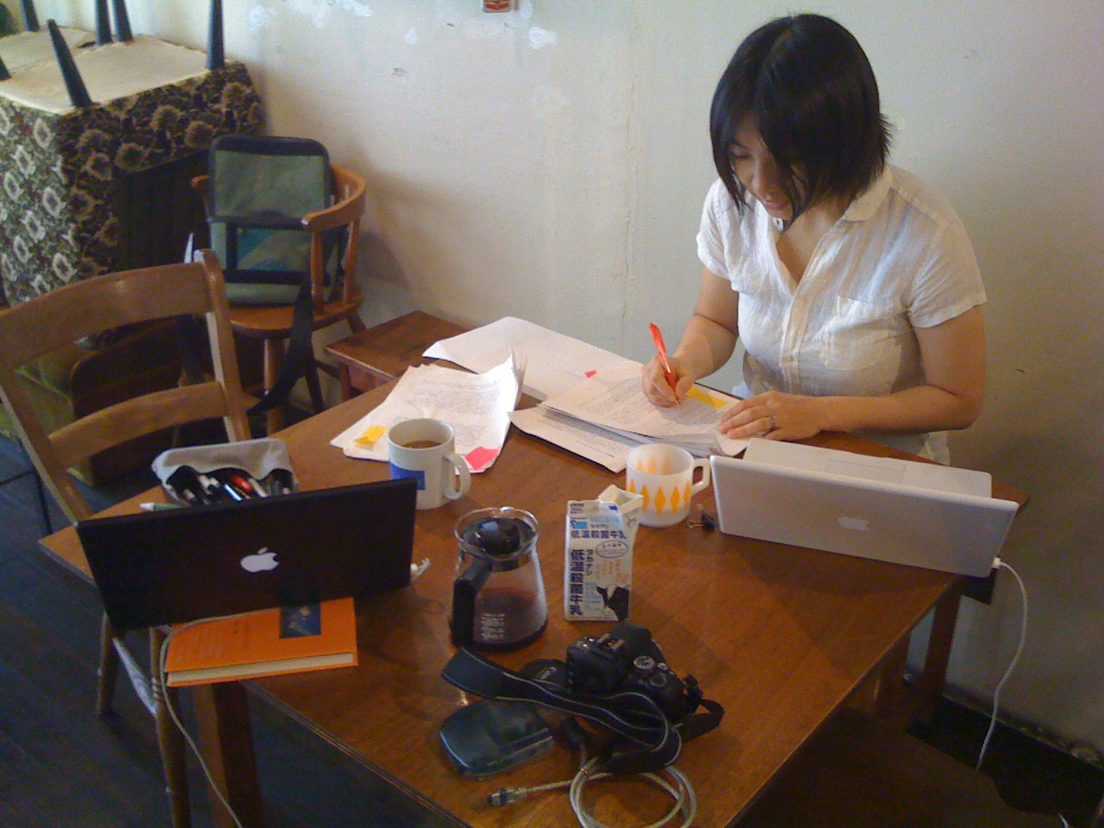 インタビューで話した「話し言葉」ならではの言い回しを整えたり、微妙なニュアンスを修正したり、思い出したエピソードを追加したり、逆に冗長な部分は削除したり...。私たちが伝えたいことをより強化し、無駄はそぎ落としていく...無駄に思えるようでも、その物語(とあえて言いますが)の中の風景を見せるために必要な無駄は残していく...。単なる店作りのHOW TO本ではないので、ゴリゴリと実務や思想だけを述べてもおもしろくない。編集の宮後さんからは「二人の生き方本だと思って下さい」と方向性が示されたので、私たちの生きる上で大切にしている部分本筋には関係なくても、おいしい道草は食っていこう!という気持ちで、ガンガン赤を入れました。山本さんは途方に暮れたに違いありません(笑)
