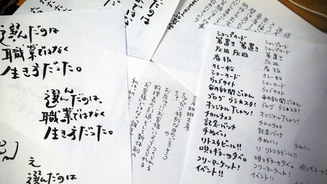Adobe Illustratorでそのデータをちょこちょこ字形修正したり、うまく描けたものに並べ替えたり、字間を調整したり.....そうやってデータを整え、渡邊さんや堀内さんにお渡しし、使ってもらいました。