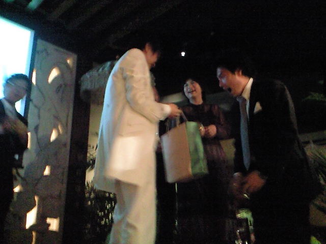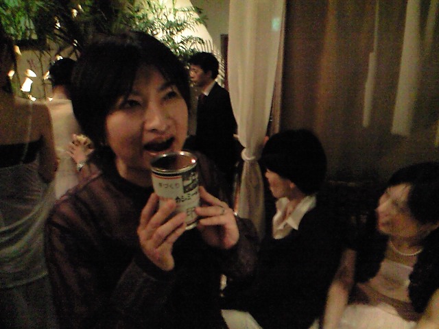 途中クイズから恒例のじゃんけん大会へ....って、こうゆう時、店長ミヤザキ、なにか商品をゲットしなかったことがない!ということで「カシミールカレーの缶詰」お持ち帰り.....新郎ケンタロー君、店長にカレーっていうのもなー.....た、確かに(笑)。