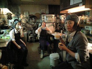 ちょっとひと段落&キッチンスタッフ、ひと息中。さ、後半戦ですよ。もうひとがんばり。(お)