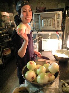 今度はくろちゃんがカレーの仕込みで玉ねぎ中…って、くろちゃんは玉ねぎ、全然へっちゃら…コンタクトレンズしてるから!(笑)(お)