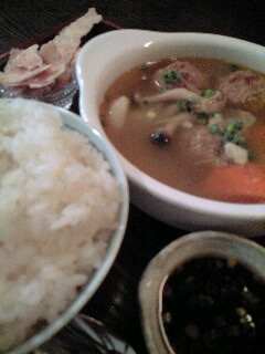 ランチでもお出しした「肉だんごと根菜のスープ」(たぶん増量)。奥にちらりと見えるのは、ポテトサラダを作る時に…ガヮちゃんがいつもうまいこと作ってくれるノンフライポテトチップス!これぞまさに賄いの一品!(お)