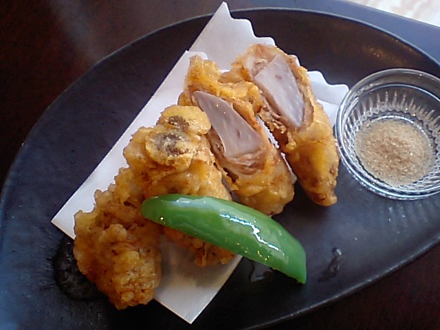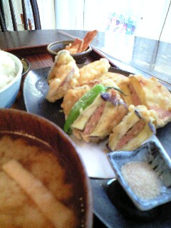 ランチでも大人気でした「さつまいもと茄子のはさみ揚げ」。実はこの組み合わせは初めて…いや、おいしかったです。個人的には、さつまいもの天ぷらは、お醤油でいただくのが好きですね…子どもの頃から(笑)(お)