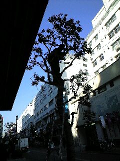 三鷹駅南口中央通りのさやかなイルミネーションもおしまい…撤収中であります。残念ですけど、これで春が来るのでしょう。(お)