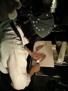 もくもくとアジを捌くガヮちゃん…って、この期に及んでアジに情けをかける彼女じゃありませんよ!えぇ、仕事人じゃけぇのぅ。(お)