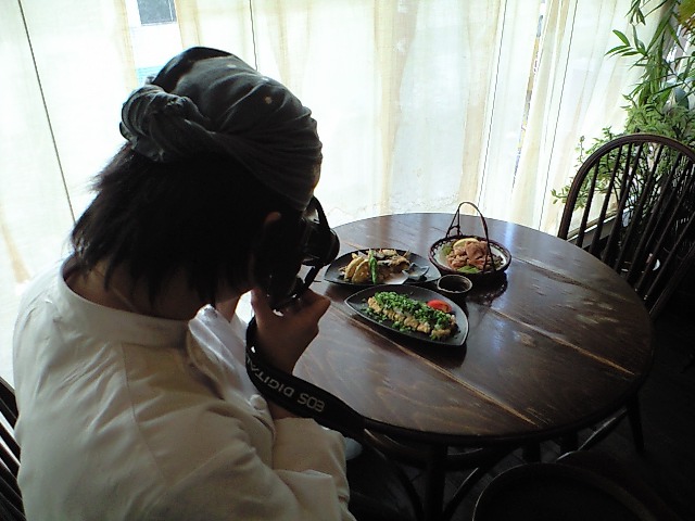 今月もギリギリ進行中の「毎月新聞ごはん」。店長ミヤザキ、トップイメージ撮影中。頼んまっせ〜!(お)