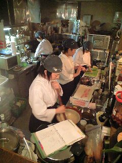 忙しくても、そうでもなくても、仕込みは毎日きちんとそこそこあるというのが、ちょっと不思議…って、女子4人、パワフルに仕込み中。イイネ!(お)