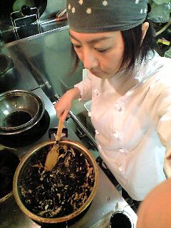 明日の小鉢・お通しを作る店長ミヤザキ…誰かが作らなくちゃ、ならない訳だよ…がんばって!(お)